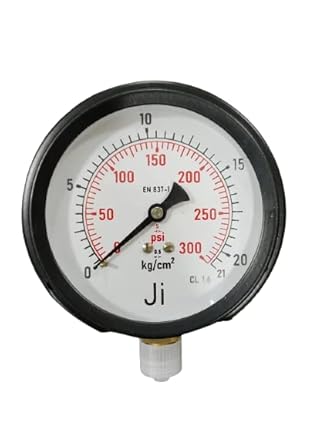 Buy Online "Ji" Japsin Instrumentation 4" Dial Commercial Pressure Gauge, Range 0-21 Kg/Cm2 with Dual Scale of 300 PSI, Direct Mounting Bottom Entry, Connection 3/8" BSP (M), Mild Steel Powder Coated Case & Brass Internals - 2% FSD Accuracy from IndianConstructionIndustry.Com in Association with Amazon India